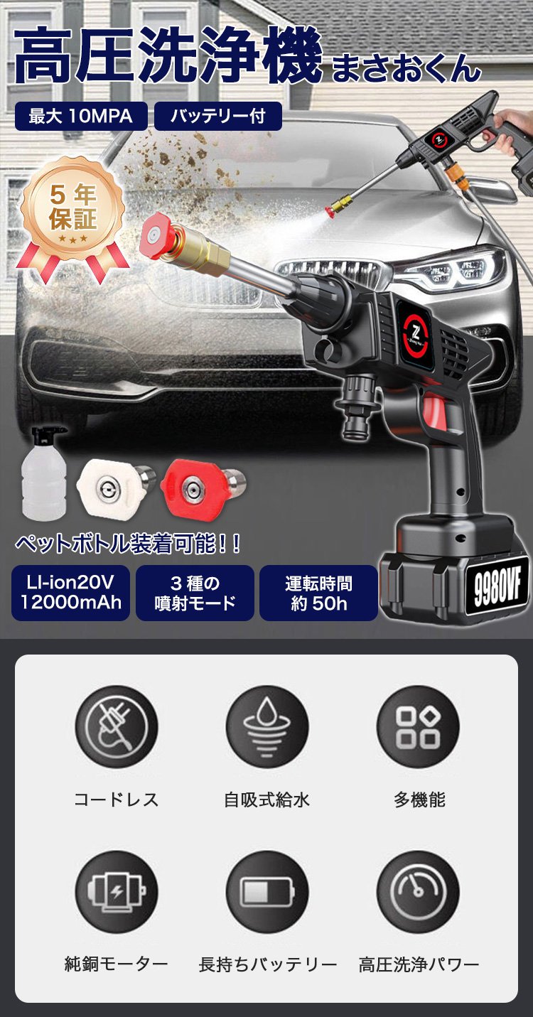 家庭用リチウムバッテリー式洗車フォームガン